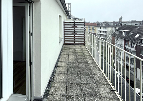 Durch das Wohnzimmer erreicht man den Balkon/Dachterasse. Dieser erstreckt sich über die gesamte Länge der Wohnung und ist gegen Osten ausgerichtet. Bis Mittags kann man hier die Sonne genießen.