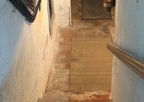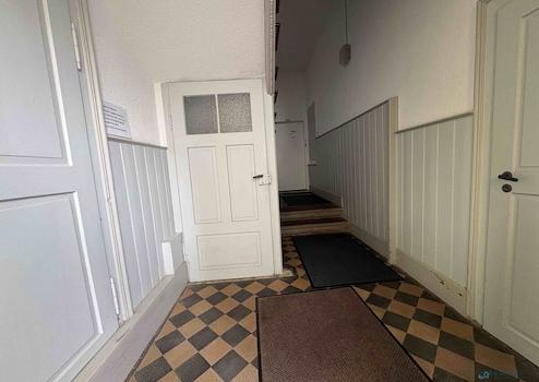 In der obersten Etage, im 2. OG, befindet sich eine Wohnung auf knapp 100 m². Die Mieterin (bereits seit 20 Jahren) hat diverse Renovierungen sukzessive in Absprache mit dem Vermieter/Verwalter selbst durchgeführt. Der Mietzins ist deutlich unterhalb des Marktniveaus. Die Räume sind etwa 2,2 Meter hoch, Wände und Decken sind, ebenso wie der Boden, von der Mieterin in Eigenleistung individuell hergerichtet worden.