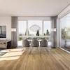 Diese Neubauwohnung überzeugt durch eine konsequent hochwertige und stilvolle Ausstattung auf Premium-Niveau. In sämtlichen Wohn- und Schlafräumen wurde edles Parkett in Eiche Natur, gebürstet, verlegt. Die 6 cm hohen weißen Weimarer Fußleisten unterstreichen das klare, moderne Design und schaffen einen harmonischen Übergang zwischen Boden und Wand.