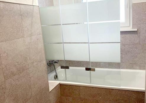 1 Bad mit Badewanne und viel Stauraum in Badezimmerschränken, Spiegelschrank und Waschtischunterschrank