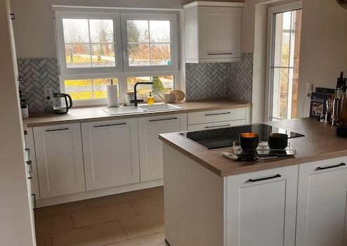 Es sind KEINE Möbel/ Einrichtung vorhanden- wie auf den Bildern zu sehen. Küche ist geblieben.
