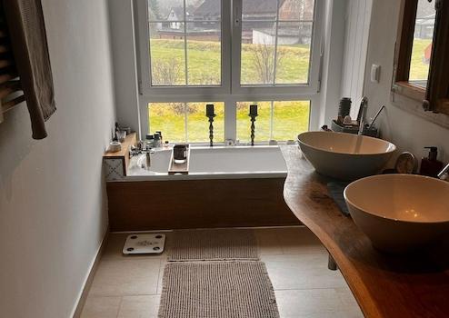 Es handelt sich um ein Holzhaus, außen wie innen. Nach höchstem ökologischem Standard und ohne Schadstoffe wurde das Haus gebaut und weiter renoviert. Erdwärmebohrung, ein exzellenter Blower-Door-Test, isolierte Bodenplatte mit eingegossener Fußbodenheizung, PV- auf dem Dach und eine Bussteuerung der der Licher und Schalter lassen keine Wünsche offen. Dieses Haus entspricht rechnerisch einem „KFW 20“ Wert und hat daher einen zukunftsichern und geringen Energieverbrauch.