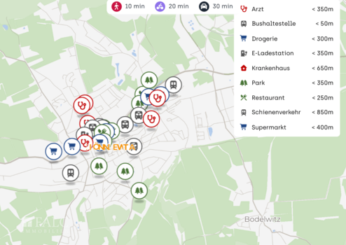Einkaufsmöglichkeiten für den täglichen Bedarf sowie grundlegende Dienstleistungen sind in der näheren Umgebung gut erreichbar. Das unterstützt kurze Wege für Mieterinnen und Mieter und sorgt für eine verlässliche Nachfrage im Bestand.