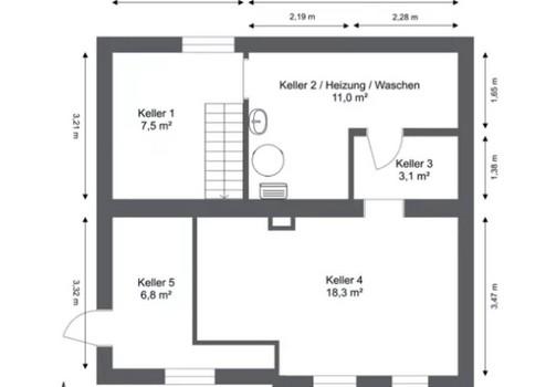 Das Wohnhaus verfügt über eine Gas-Zentralheizung mit Warmwasserspeicher (Baujahr 2012) sowie fünf Kellerräume, von denen einer als Trockenraum genutzt wird.