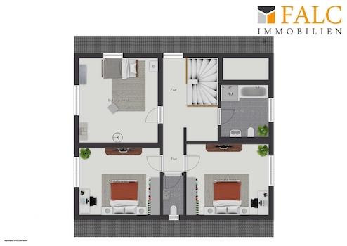 - Dachgeschoss: 3 Schlafzimmer, Gäste-WC, großes Bad mit Wanne und Dusche