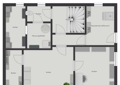 - Keller: Abstell-/Werkräume, Gäste-WC, Hauswirtschaftsraum mit Dusche, überdachte Außentreppe in den Garten