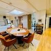 Die Aufteilung und Ausstattung ergibt sich wie folgt: großzügiger Eingangsbereich und Diele (Windfang mit Garderobe), ein hübsches Gäste-WC, ein gemütlicher Essbereich, zwei Kinderzimmer bzw. Büros, ein großes Elternschlafzimmer, ein geschmackvolles und geräumiges Badezimmer mit ebenerdiger Glasdusche, Waschtisch und WC, eine helle Wohnküche (die weiße Nobilia-Küche verbleibt im Haus und ist im Kaufpreis enthalten) sowie ein traumhafter und sonniger Wohnbereich mit Innenkamin, sowie großen, bodentiefen Fensterflächen (Glasschiebe-Elemente) mit Ausgang auf die Terrasse mit Außenkamin und in den wunderschön angelegten Garten mit Wasserspiel.