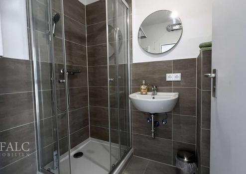 Das innenliegende Bad ist mit einer Dusche ausgestattet und funktional gestaltet – praktisch im Alltag und pflegeleicht. Die Wohnung verfügt über einen offenen Grundriss, der trotz kompakter Größe ein luftiges Raumgefühl vermittelt.