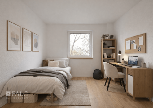 Zwei weitere, flexibel nutzbare Zimmer eröffnen viele Möglichkeiten: gemütliches Schlafzimmer, inspirierendes Homeoffice oder ein zusätzliches Zimmer für Mitbewohner oder Besuch. Das moderne Tageslichtbad rundet das stimmige Wohngefühl ab.
