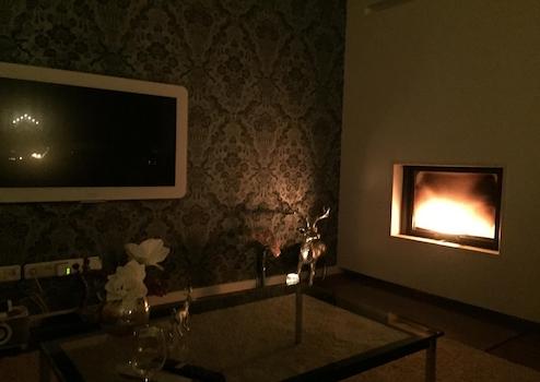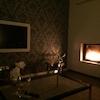 oOffener Wohnbereich mit Kamin (7 kW), Natursteinverkleidung (Casablanca/Limestone), HiFi-Vorverkabelung