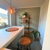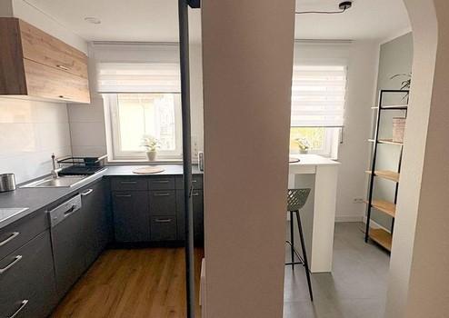 - Die Küche ist über einen Tresen mit dem angrenzenden offenen Essbereich verbunden