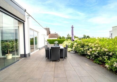 Beheizt wird das Objekt durch eine Luft-Wasser-Wärmepumpe. Der selbst erzeugte Strom aus der PV-Anlage versorgt die Wärmepumpe und die Wallbox. Der überschüssige Strom wird eingespeist. Ergänzt wird diese modernste Haustechnik durch ein Lüftungssystem mit Wärmerückgewinnung und ein BUS-System.
