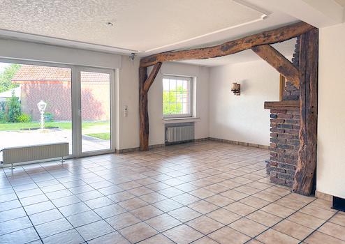 Diese besonders großzügige Immobilie (Baujahr um 1977) präsentiert sich als idealer Familienwohnsitz, umgeben von weitläufigen Wiesen und Feldern.