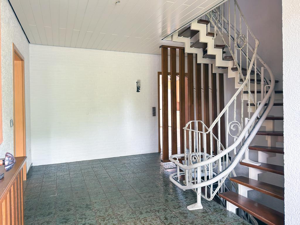 Diese besonders großzügige Immobilie (Baujahr um 1977) präsentiert sich als idealer Familienwohnsitz, umgeben von weitläufigen Wiesen und Feldern.