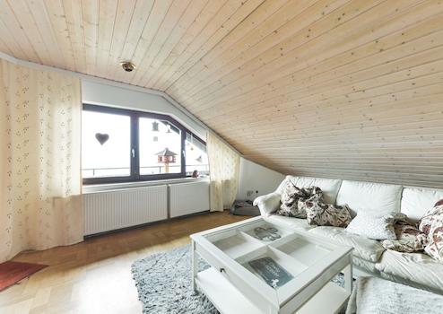 Das gemütliche Wohnzimmer bildet das Herzstück der Wohnung und eröffnet den Zugang zur Loggia, die zum Entspannen und Verweilen einlädt. Von hier aus genießen Sie einen freien, unverbaubaren Ausblick – ideal, um den Tag entspannt ausklingen zu lassen. Diese Wohnung verbindet Wohnqualität, Ruhe und Ausblick auf ideale Weise und stellt eine attraktive Gelegenheit für alle dar, die ein besonderes Zuhause suchen.
