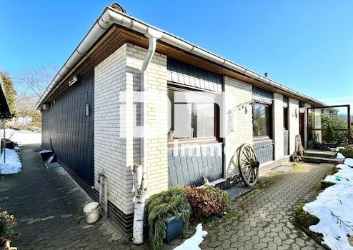 Dieser im Jahr 1972 in Ständerbauweise errichtete Bungalow in Klinkerfassade vereint großzügiges Wohnen mit der praktischen Barrierefreiheit eines durchdachten Grundrisses.