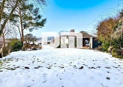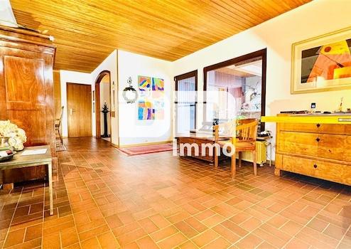 Bungalow, Baujahr 1972, Grundstück 1703 m² , Wohnfläche EG 163,55 m², Nutzfläche Kellergeschoss 163,55 m² voll unterkellert, Gästebad mit Dusche, Gästezimmer/Büro, Bad mit Wanne und Dusche, Terrasse 1 + Terrasse 2 ,Küche mit Einbauküche, Hobbykeller beheizt / Zusätzlicher Wohnraum + Wellnesbereich inkl. Sauna mit Bad / Küchenanschlüsse - Optionaler Einliegerbereich, Kellergeschoss / hohe Deckenhöhen und kann als vollwertiger Wohnraum genutzt werden, Fertighaus in Ständer Bauweise, voll gedämmt / Außenfassade verklinkert, Zwischendecke gedämmt, Sat TV DSL, Außenbereich großes Grundstück mit naturbelassenen Garten umfangreich angelegt, voll umzäunt, zweimal Terrasse / einmal groß / einmal klein, beide Teil überdacht, Gartenteich, Panoramablick auf die Natur mit angrenzendem Wald / Wiesen Garage, Einzelgarage, Kipptor mechanisch, Geräteanbau an der Garage, zweimal PKW Stellplatz