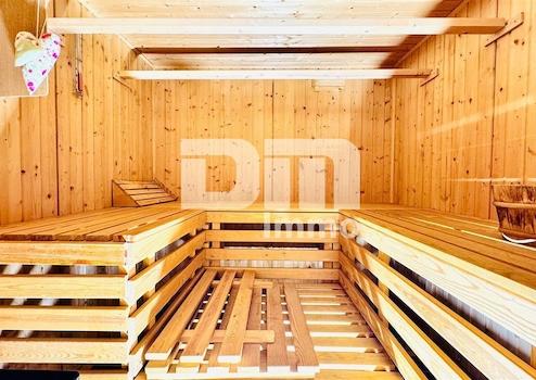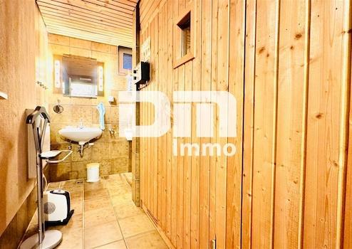 Highlight ist der eigene Wellnessbereich mit Sauna, Dusche und WC.