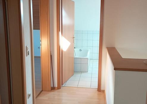 Über den Flur gelangen Sie ins Treppenhaus und von dort ins Obergeschoß mit großzügigem, hellen Badezimmer mit Dusche und Wanne und den 3 Schlafräumen.