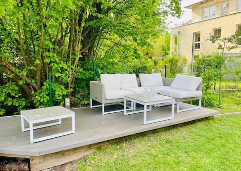 Großzügige Terrassen mit privatem Gartenanteil.