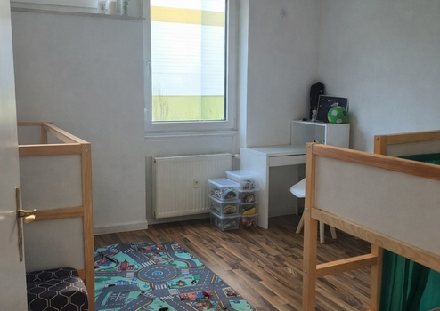 Es erwarten sie zudem zwei gut geschnittene Kinder- /Arbeitszimmer, ein gemütliches Schlafzimmer, ein großzügiges Wohnzimmer sowie ein separater Essbereich, der zu gemeinsamen Mahlzeiten und geselligen Abenden einlädt. Die separate Küche ist mit einer Einbauküche ausgestattet, die bereits im Kaufpreis enthalten ist – ideal für einen unkomplizierten Einzug.