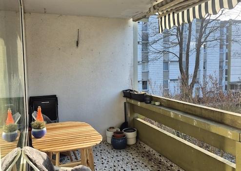 Eine Verglasung des innenliegenden Balkons, mit Blick auf den angrenzenden Spielplatz, ist (in Abstimmung mit der Hausverwaltung) jederzeit möglich.