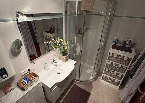 Die großzügige Fensterfront sorgt für viel Tageslicht und unterstreicht das freundliche Raumgefühl. Auf dieser Ebene befindet sich auch das sehr gepflegte, hell geflieste Duschbad mit Waschmaschinenanschluss.