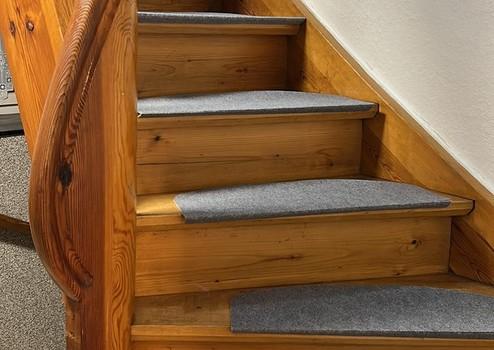 •eine designorientierte Treppenanlage, die die Ebenen stilvoll verbindet