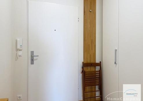 Im Flur gibt es dank eines praktischen Einbauschranks sehr viel Stauraum für Garderobe und Putzutensilien.
