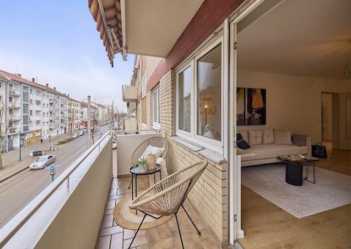 Die Wohnung befindet sich im Mannheimer Stadtteil Rheinau, einem überwiegend wohngeprägten Umfeld im Süden der Stadt. Die Lage zeichnet sich durch eine sehr gute Anbindung sowohl an den Individualverkehr als auch an den öffentlichen Nahverkehr aus: Straßenbahnhaltestellen mit direkter Verbindung in die Mannheimer Innenstadt, zum Hauptbahnhof und zur Universität sind in wenigen Gehminuten erreichbar.