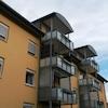 Neue Hauseingangstür mit Briefkästen und neue Fenster im Treppenhaus