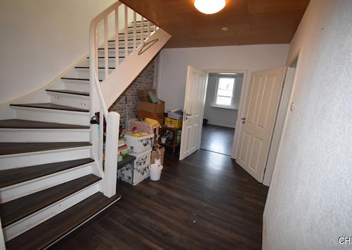 Beginnen wir mit dem Haupthaus: Zuerst betreten wir eine Diele mit der Garderobe und Zugang zum Badezimmer, ausgestattet mit Wanne, WC und Tageslichtfenster. Weiter kommen wir in einen Flur mit dem Treppenhaus in das zu Wohnzwecken ausgebaute Dachgeschoss. Die massive Holztreppe wurde komplett neu aufgearbeitet.