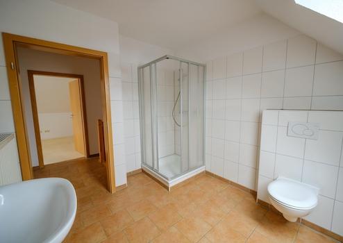 Das Dachgeschoss verfügt über ein Schlafzimmer, ein weiteres Zimmer (z. B. Arbeits- oder Gästezimmer) sowie ein Badezimmer mit Tageslicht und Dusche.
