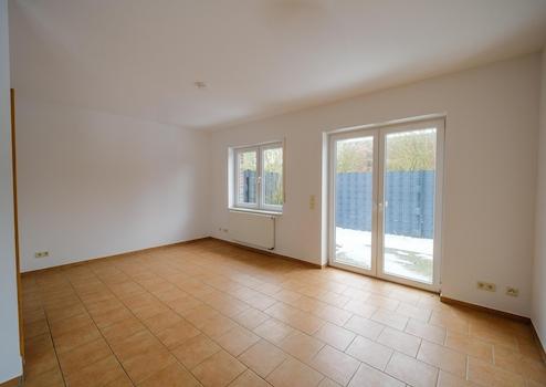 Im Erdgeschoss befinden sich der offene Wohn-Essbereich mit integrierter Küche sowie ein Gäste-WC. Von hier aus besteht Zugang zur Terrasse.