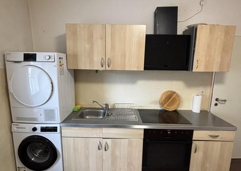 Die Wohnung verfügt über eine Einbauküche, sowie eine Waschmaschine und einen Trockner.