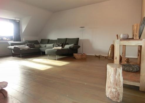 - Hochwertiger Echtholzparkettboden im Wohnzimmer