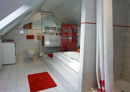Diese 4-Zimmer-Maisonette-Wohnung befindet sich in einem sehr gepflegten Wohnhaus mitten im Zentrum von Erftstadt-Gymnich. Die Wohnfläche von ca. 130,74 m² verteilt sich auf 4 Zimmer, hochwertiger funktionaler EINBAUKÜCHE, Diele, Badezimmer mit großer Badewanne, separater Dusche und WC sowie ein separates Duschbad mit WC. Ein Bad befindet sich im 2. OG - das andere auf der oberen Ebene der Wohnung.