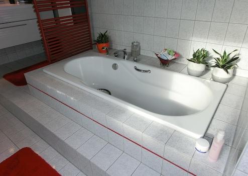 In dem unteren Bad befindet sich ein Waschmaschinenanschluss und die Möglichkeit zusätzlich einen Trockner aufzustellen. Im oben gelegenen Bad kann ebenfalls ein Trockner aufgestellt werden. Im Innenhof befindet sich ein separater Trockenraum und Fahrradraum.