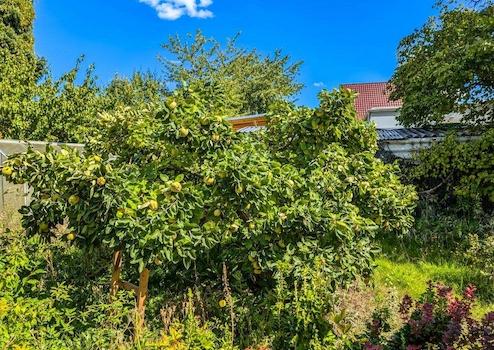 Das ca. 1.093 m² große Grundstück ist ein echtes Highlight: Ein idyllischer Garten mit alten Obstbäumen und -sträuchern lädt zum Verweilen ein und bietet Platz für Freizeit, Spiel und Erholung.