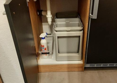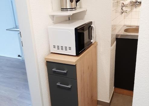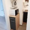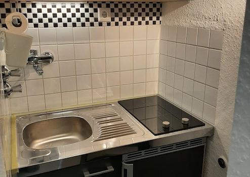 - Pantry-Küche mit Ceranfeld und Kühlschrank, Hängeschränke, Unterbauleuchte,