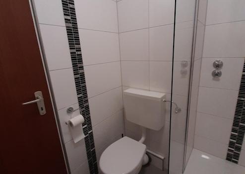 - Dusche, Spiegelschrank, neues Badzubehör, Ventilator mit Feuchte-Automatik,