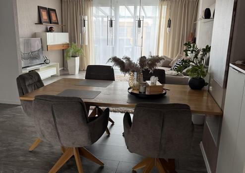 Auf ca. 141 m² Wohnfläche verteilen sich 5 Zimmer, zwei voll ausgestattete Badezimmer sowie ein zusätzliches Gäste-WC. Das ca. 256 m² große Grundstück bietet einen gepflegten Garten mit automatischer Bewässerungsanlage sowie eine großzügige Terrasse mit Glasüberdachung und integrierter Unterdach-Markise – ideal für geschützte und angenehme Stunden im Freien.