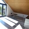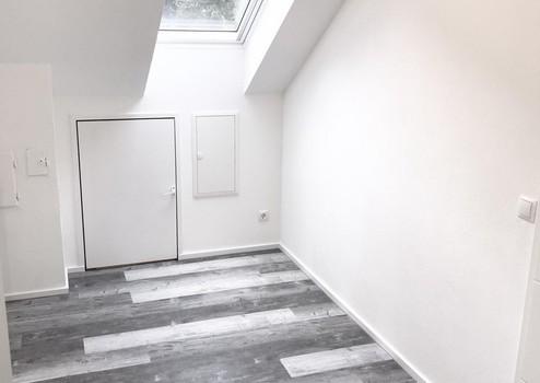 Das Büro / Arbeitszimmer mit Dachfenster und Rollo bietet noch einen zusätzlichen Abstellraum in der Dachschräge.