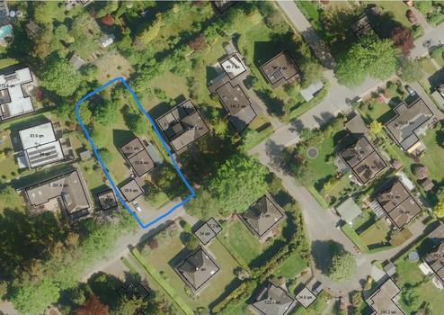 Das Grundstück ist offiziell ausgewiesen als Flurstück 672 mit 884 m² und liegt im Bereich des Baustufenplans mit W1o. Dieses bedeutet, dass neben dem Wohngeschoss, auch ein weiteres Vollgeschoss möglich ist und eine offene Bebauung (siehe auch offene Bauweise (Baurecht) – Wikipedia) ermöglicht.