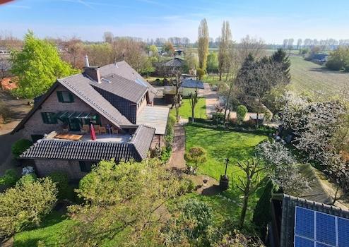 exklusives Landhaus/Mehrfamilienhaus/Resthof im herrlich grünen Außenbereich von Rees, nur wenige Minuten zum Stadtzentrum. Das Mehrfamilienhaus besteht aus 4 Einheiten, konkret 3 Eigentumswohnungen und eine Einliegerwohnung. Der Scheunentrakt / Heuboden wurde 2018 ausgebaut (Wohnung 3) Wohnung 1 + 2 wurden 1993 grundsaniert und stets modernisiert sowie renoviert. In Wohnung 1, Erdgeschoß, wurde 2013 ein neues Bad installiert, 2009 wurde die Küche erneuert, sowie Küche, Eßzimmer und Wohnzimmer zusammengelegt. Die ehem. Pferdeställe fungieren aktuell nur noch als Abstellräume, wären jedoch jederzeit wieder als Pferdestall nutzbar. In rund 30 Meter vom Grundstück entfernt befinden sich rund 10.000 qm Pferdeweiden und 5.000 qm Waldflächen, welche optional dazu erworben werden können für 250.000 , Flurstücke 73 + 92, Flur 12, Rees. Zusätzlich kann in direkter Nachbarschaft zum Haus in östlicher Richtung ein Gewerbegrundstück mit einem ehem. Pferdekarussell gepachtet oder erworben werden (Flur 11, Flurstück 312, 4.300 qm, 490.000 ) Dieses Grundstück bietet zahlreiche Nutzungsmöglichkeiten, wie Kleintierhaltung, Pferdehaltung oder den Bau einer Halle. Weitere Entfaltungsmöglichkeiten können gerne bei einem Treffen vor Ort besprochen werden. Seit 2004 werden die Wohnungen durch ein Fernwärmenetz versorgt durch einen Holzscheitkessel in der benachbarte ehem. Reithalle. Dort befindet sich ein 50 kW Holzofen in Verbindung mit einer 160 qm großen thermischen Solaranlage. 2 Gasanschlüsse sind vorhanden, so dass eine autarke Heizenergieversorgung jederzeit wieder möglich wäre, falls man sich vom Fernwärmenetz abkoppeln möchte oder man entscheidet sich für eine Wärmepumpe. In den Übergangszeiten sorgen 3 Holz- u. 1 Kachelofen in den Wohnungen für reichlich Wärme, so dass eine echte Autarkie stets gewährleistet ist. Zusätzliche Warmwasserversorgung wird stets per Durchlauferhitzer gewährleistet. Die Holzversorgung ist durch den nahe gelegenen Wald sowie immensen Holzvorrat für die nächsten Jahre stets gesichert. Verkauft wird direkt vom Eigentümer. Besichtigungen werden nach Vorlage einer aktuellen Finanzierungsbestätigung durchgeführt.