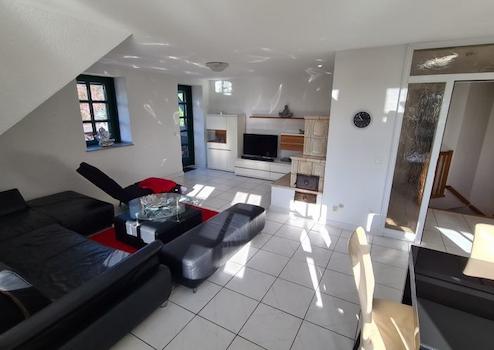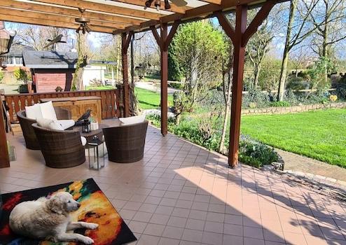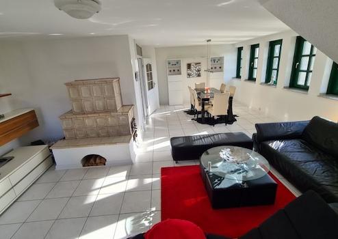 Fußbodenheizung, Fliesen, solide einbruchsichere Merantifenster, Fernwärme, Fassade in Feldbrand Verblendmauerwerk, Außenwände in Kalksandstein, tragende Innenwände in Kalksandstein, nicht tragende Wände in Ständerwerk/Gipskartonplatten, Decken in Stahlbeton örtlich vergossen und unterseitig verputzt, Wohnzimmer EG Dekobalkenlage im Deckenbereich, Tonpfannendach, massive Außentüren in Eiche u. Metall, exkl. Einbauküchen, Dachgeschoßbereiche in sichtbaren Sparren, 4 Garagen, 2 Carports, 7 PKW Stellplätze, robustes individuell geschmiedetes Eingangstor, bunter großzügiger Garten mit zahlreichen Gestaltungsmöglichkeiten, Schwimmteich, Sauna, Aufenthaltsraum, optionale Pferdehaltung, nahe liegende Pferdeweide, ca. 3,3 Ha Pferdewiesen können dazu gepachtet werden, Photovoltaikanlage 7,4 kWp aus 2005, verkauft werden die Wohnungen möbliert