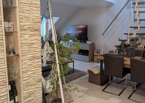 Vom Wohnzimmer führt eine Treppe in den vollständig ausgebauten Spitzboden (ca. 20–25 m² Nutzfläche) – perfekt als Atelier, Spielbereich, Hobbyraum, Leseecke oder Stauraum mit Charme.