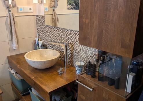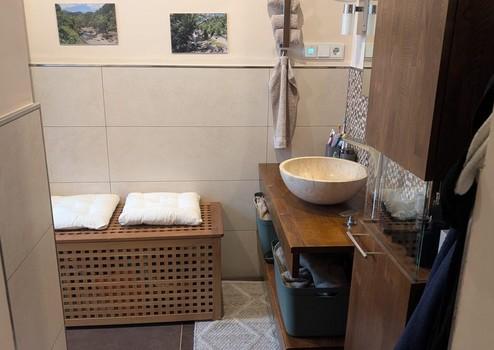 Das moderne Bad mit ebenerdiger Dusche unterstreicht den hochwertigen Standard der Wohnung.