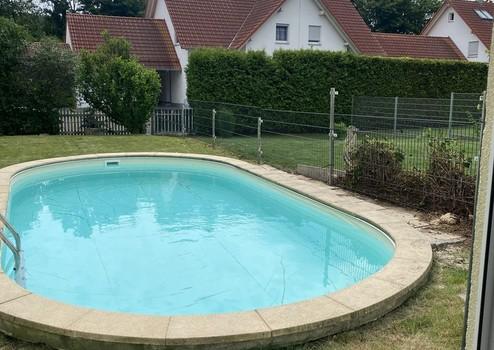 Sonniges,Geraümige DHH mit solarbeheiztem Schwimmbad 7x3.5m und übergroßer Doppelgarage.