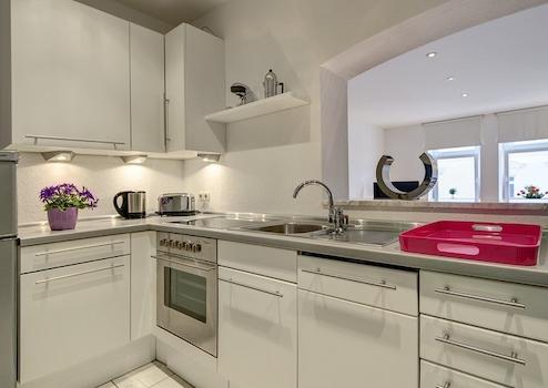 Einbauküche mit Geschirrspüler, Miele Waschmaschine, Teilmöblierung